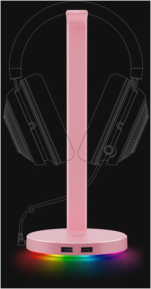 Verleihe deinem Gaming-Setup mit der Razer Base Station V2 Chroma mehr Funktionalität und Flair. Synchronisieren Sie Ihre RGB-Beleuchtungseffekte mit unserem neuen, verbesserten USB-Hub für Headset-Ständer, der zum Aufhängen und Präsentieren Ihrer Kopfhörer entwickelt wurde, während Sie eine Spiel- oder Arbeitspause einlegen.