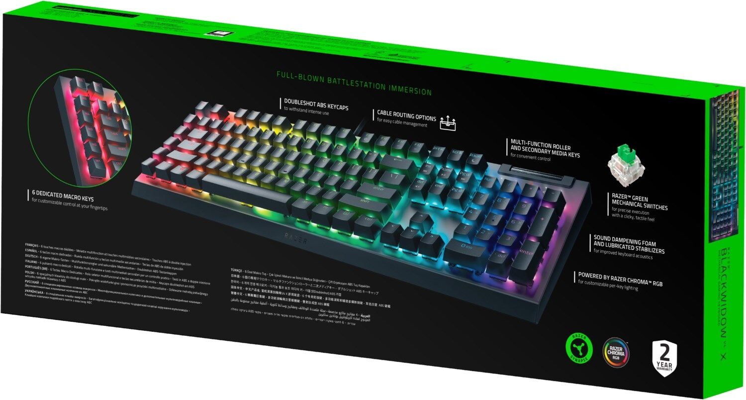 Gönn dir ein Upgrade für deine Battle Station mit der Razer BlackWidow V4 X - einer hoch modernen mechanischen Gaming-Tastatur, die für noch mehr Kontrolle entwickelt wurde. Dank Makro- und Medientasten kannst du noch mehr Befehle und Tastenkombinationen sofort ausführen, und dank Razer Chroma™ RGB genießt du Immersion auf einem völlig neuen Niveau.