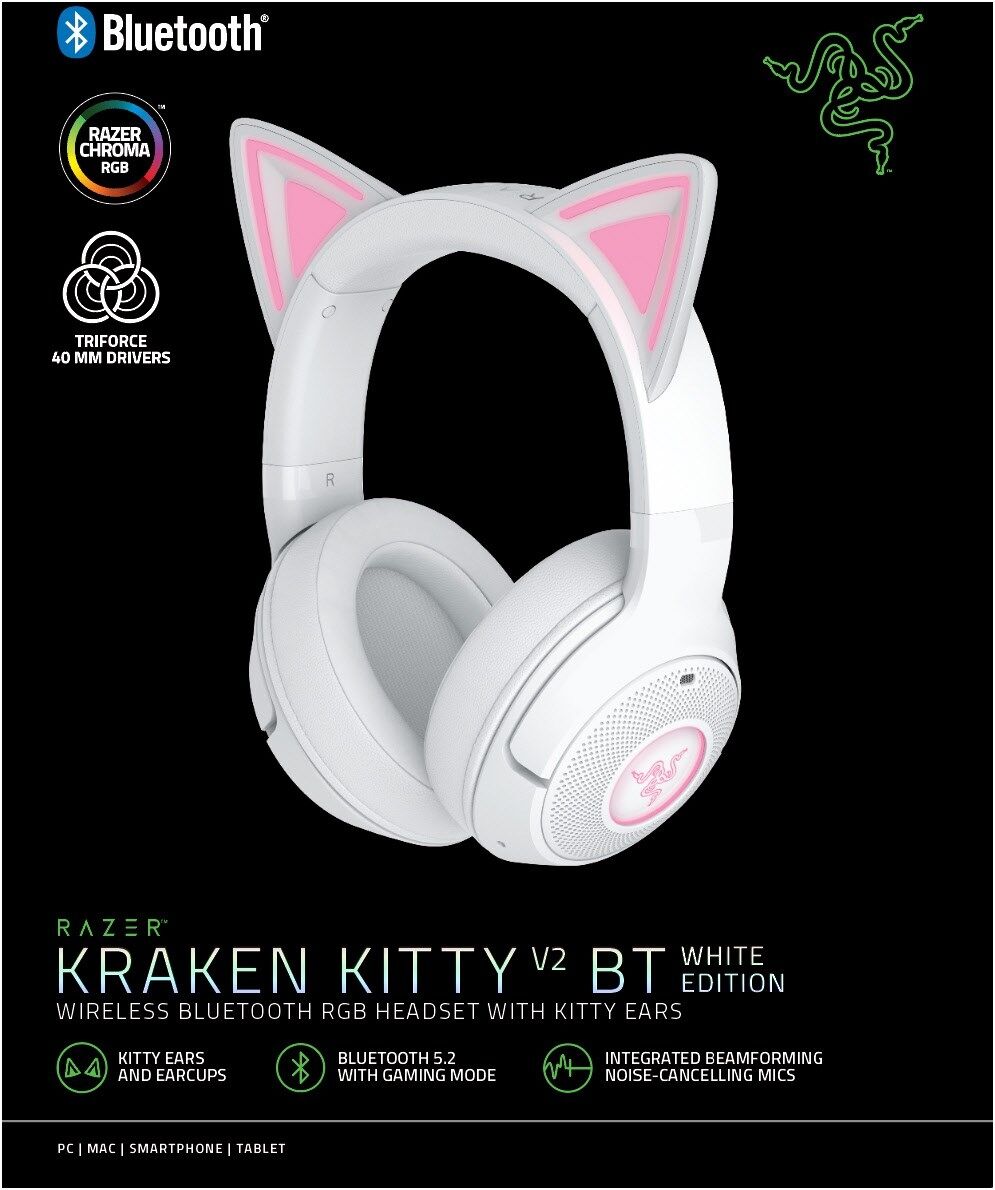 Zeig immer und überall deinen Kitty-Style mit dem Razer Kraken Kitty V2 BT - einem kabellosen Bluetooth-Headset für Gaming und IRL-Streaming. Powered by Razer Chroma™ RGB: Inszeniere deine einzigartige Persönlichkeit und greife auf noch bessere Funktionen zurück, um deine Leidenschaft für Gaming und Streaming wie nie zuvor auszudrücken.