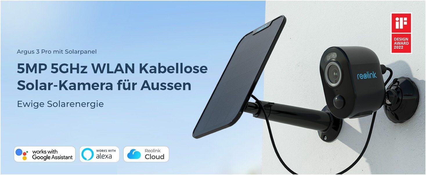 - Unterstützt Aufladung mit Reolink Solarpanel
