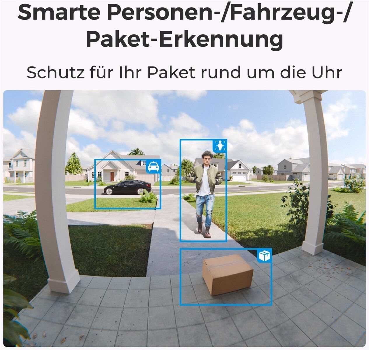 Bleiben Sie auf dem Laufenden mit intelligenter Personen-/Fahrzeug-/Paketerkennung und Besucherbenachrichtigung