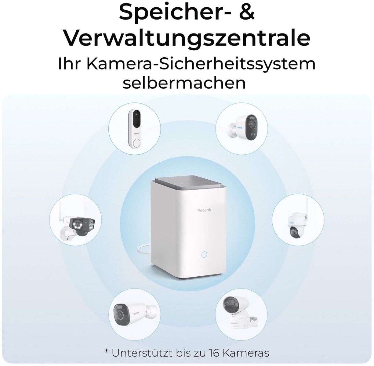 Reolink Hub P1 ist eine drahtlose Wi-Fi 6-Sicherheitszentrale mit verschlüsselter lokaler Speicherung und zentraler Verwaltung.