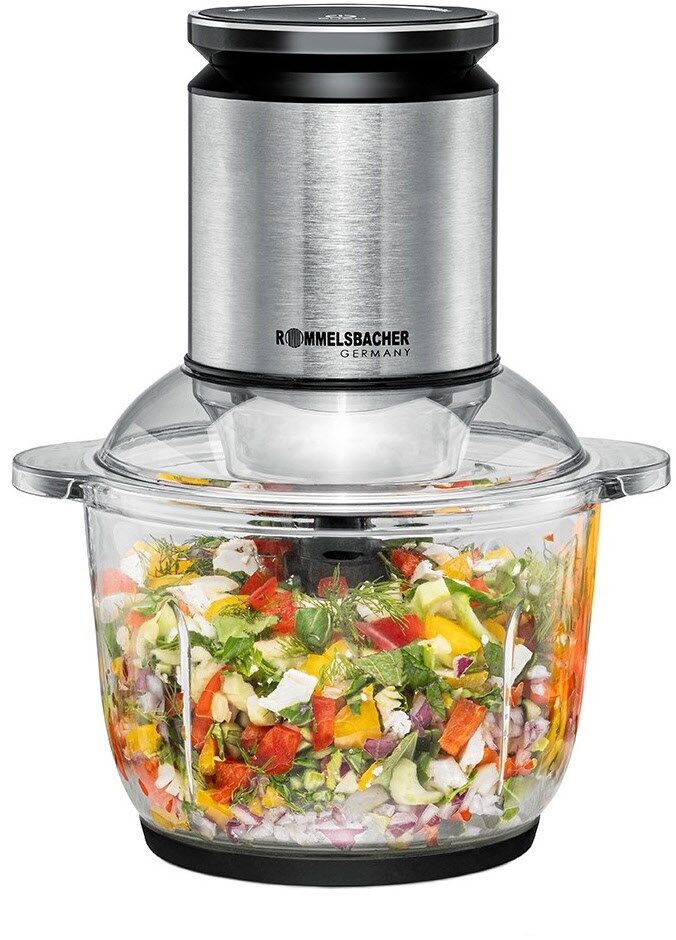 Und genau dafür gibt es die hochwertigen extra-großen Multi Zerkleinerer von ROMMELSBACHER. Hacken, Schneiden, Pürieren, Vermischen – mit einem leichten Druck auf die Start/Stopp Taste verarbeitet das Gerät Zwiebeln, Kräuter, Gemüse, Obst, Nüsse, Fleisch & mehr.