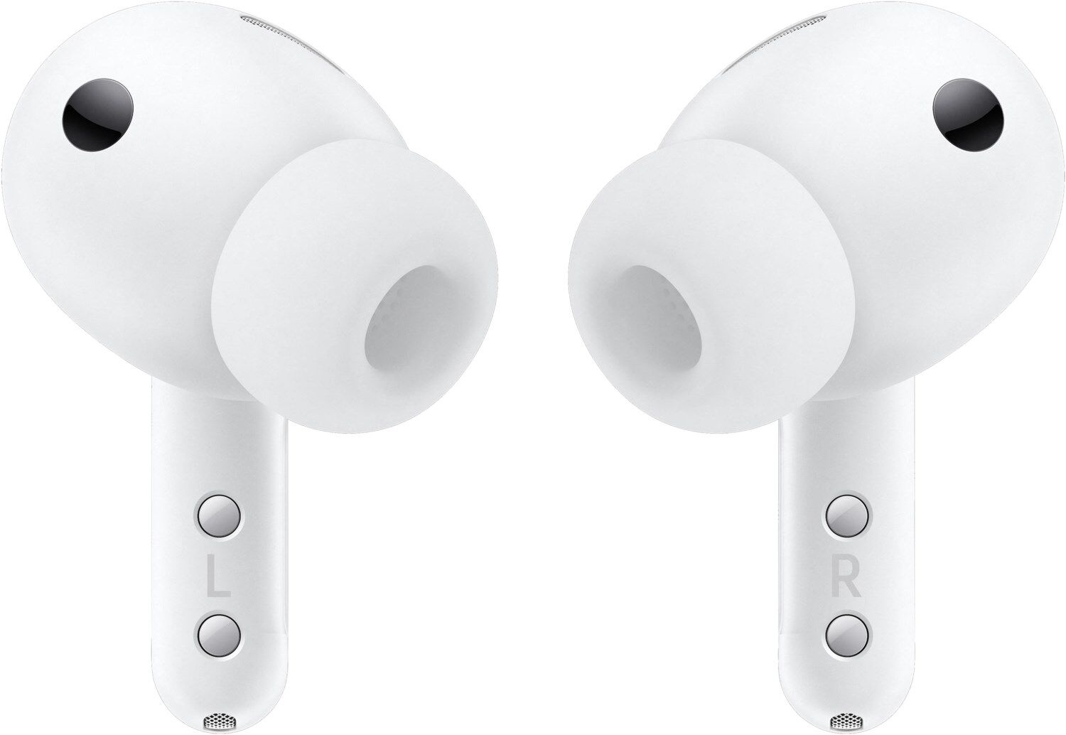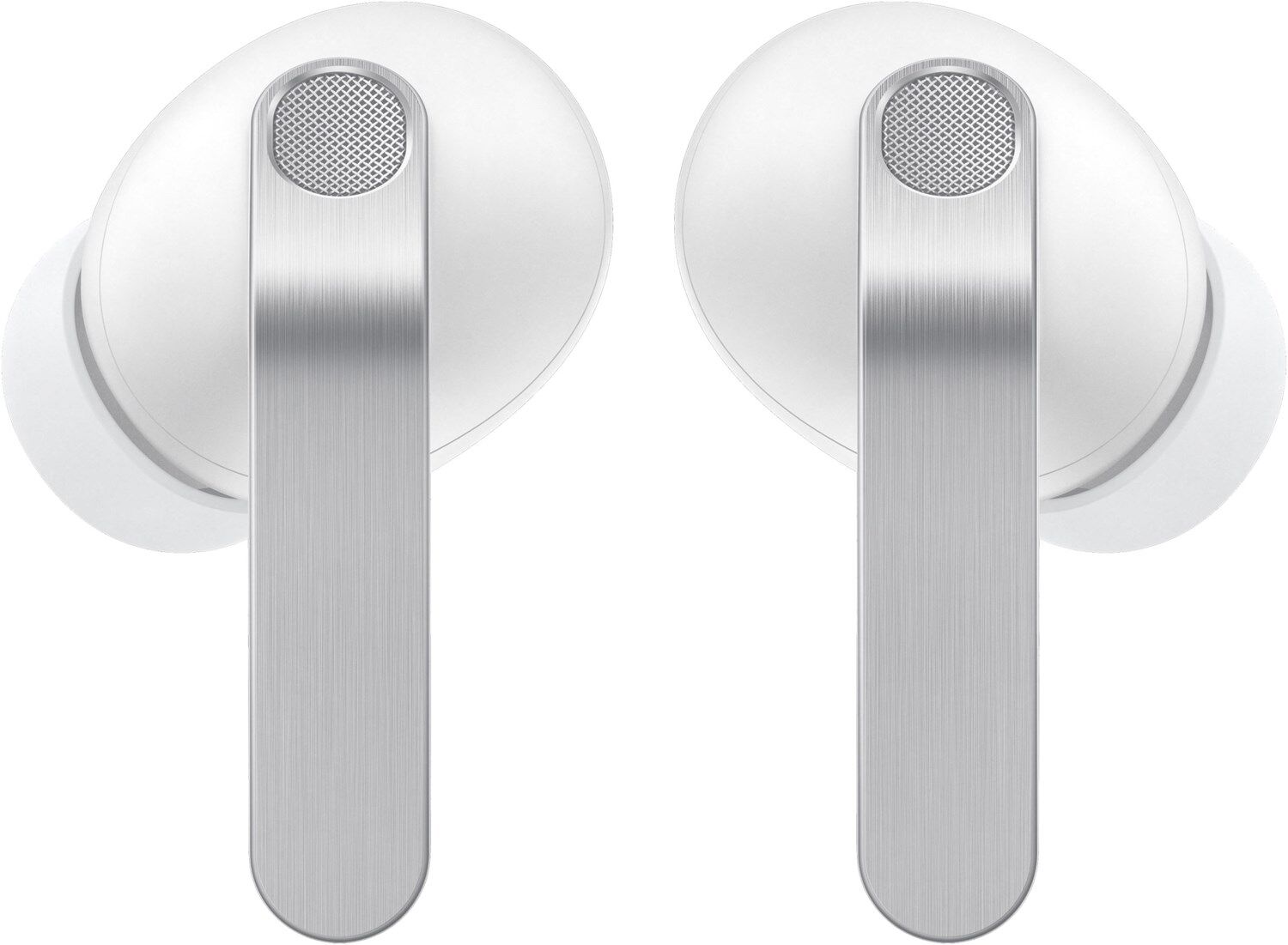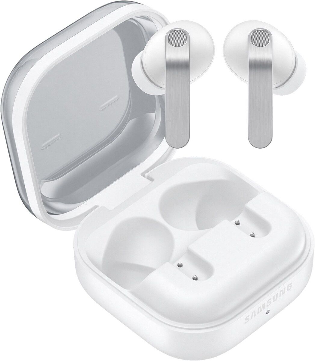 ⁴ Bitte beachte, dass proprietäre Samsung Galaxy-Funktionen von Smartphones anderer Hersteller gegebenenfalls nicht unterstützt werden. Du kannst die Galaxy Buds unabhängig vom Betriebssystem als Bluetooth-Audio nutzen. Um erweiterte Einstellungen konfigurieren zu können, müssen die Galaxy Buds mit einem Smartphone oder Tablet mit Android 12.0 oder aktueller sowie mindestens 1,5 GB RAM gekoppelt sein. Auf Endgeräten ab One UI 7.0 kann die Konfiguration über die Einstellungen deines Smartphones oder Tablets erfolgen, mit vorherigen One UI Versionen über die Galaxy Wearable-App.
