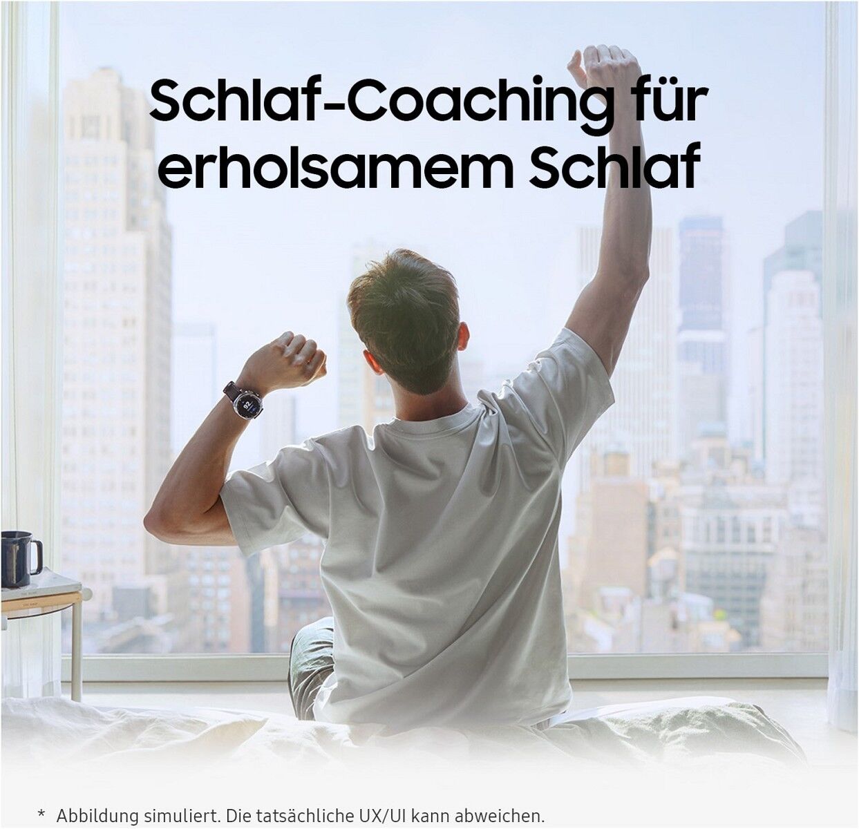 Auch beim Sport oder im Schlaf unterstützt dich die Galaxy Watch8 Classic mit personalisierten Coachings, um deine Ziele zu erreichen und dein Wohlbefinden im Blick zu haben. Die Smartwatch kann zum Beispiel die Belastung deines Gefäßsystems im Schlaf erkennen und dir Tipps für mehr Ausgeglichenheit geben.³ Wie sieht es mit deiner Ernährung aus? Der Antioxidantien-Index verrät dir, ob du genügend sekundäre Pflanzenstoffe zu dir nimmst.⁴ Zudem bietet dir die Galaxy Watch8 Classic ein individuelles Schlafcoaching mit dem du genaue Einblicke in deine nächtliche Regeneration bekommst. So startest du mit Energie in den Tag und kannst im Einklang mit deiner inneren Uhr leben.