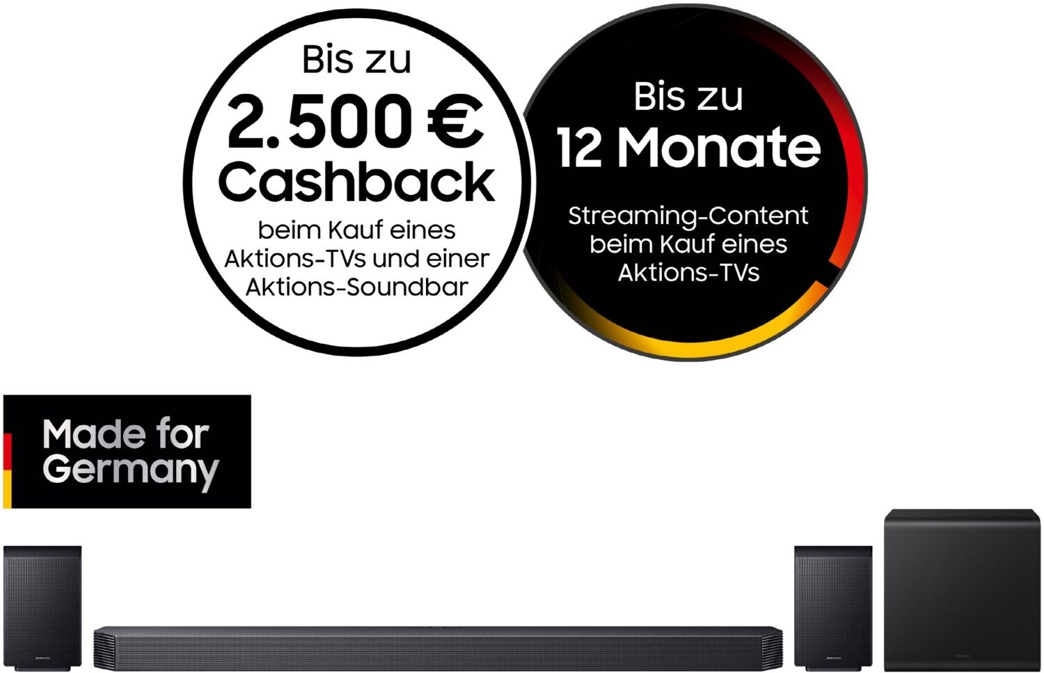 * Aktions-TV mit -Soundbar kaufen und satten Cashback sichern. Aktionszeitraum: 19.01.2026 bis 10.05.2026. Teilnahmebedingungen, Aktionsgeräte mit länderspezifischem Modell-Code sowie modellabhängige Cashbacks unter: samsung.de/mixmatch