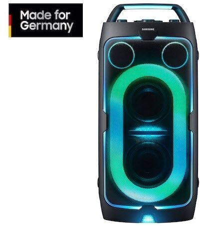 Aufdrehen und los geht’s! Satte 240 Watt Sound mit tiefem, dynamischem Bass bringen jede Party richtig in Fahrt. Egal, ob drinnen oder draußen: Dieser große Party-Lautsprecher sorgt für mächtig Stimmung und non-stop gute Laune.