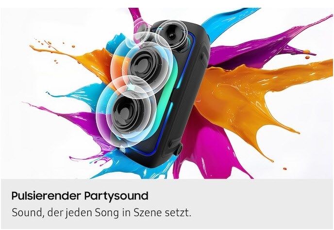 Spüre die volle Bass-Power: Tiefe, vibrierende Sounds treffen auf drei individuell anpassbare Soundmodi und kraftvolle Dual-Subwoofer. So passt sich der Sound jeder Stimmung an – von wilder Party bis zu entspannter Chill-out-Musik. Dual-Hochtöner mit Waveguide-Technologie für glasklare Höhen und eine beeindruckende Klangweite runden das Sounderlebnis perfekt ab.