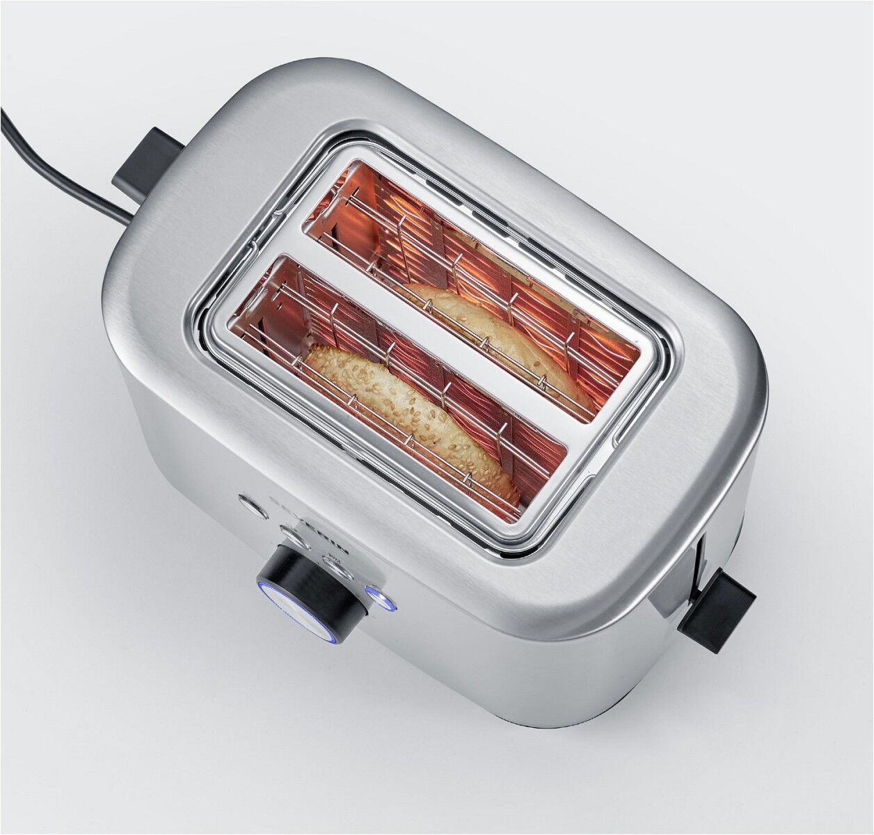 Das Design-Highlight von SEVERIN sorgt nicht nur als Hingucker in der Küche für Aufsehen, sondern auch mit seinen perfekten Ergebnissen. Dank XXL-Röstkammern wird trotz platzsparendem Design auch großes Brot getoastet, die Brotscheibenzentrierung sorgt für perfekte Bräunungsergebnisse.