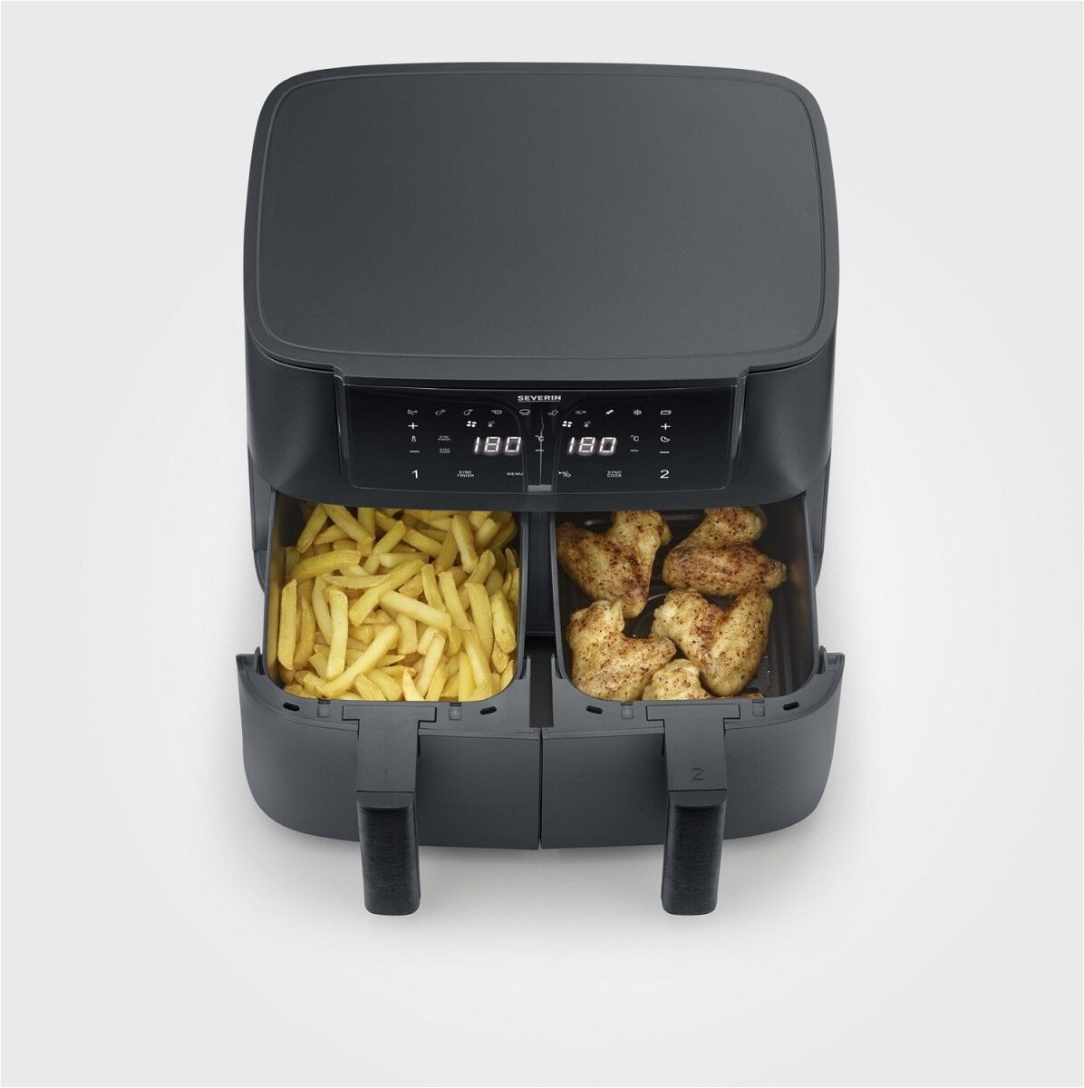 Vielseitige Einsatzmöglichkeiten für bspw. Pommes Frites, Hähnchen, Steak, Gemüse, Fisch, Tiefkühlkost, Shrimps, Tofu, Grillspieß und Kuchen