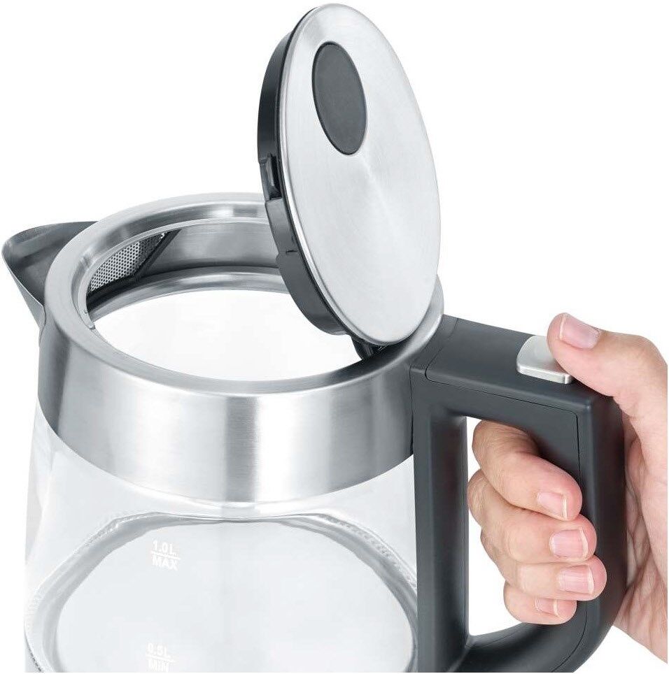 kompakter, leistungsstarker Wasserkocher in hochwertigem Glas-Edelstahl-Design