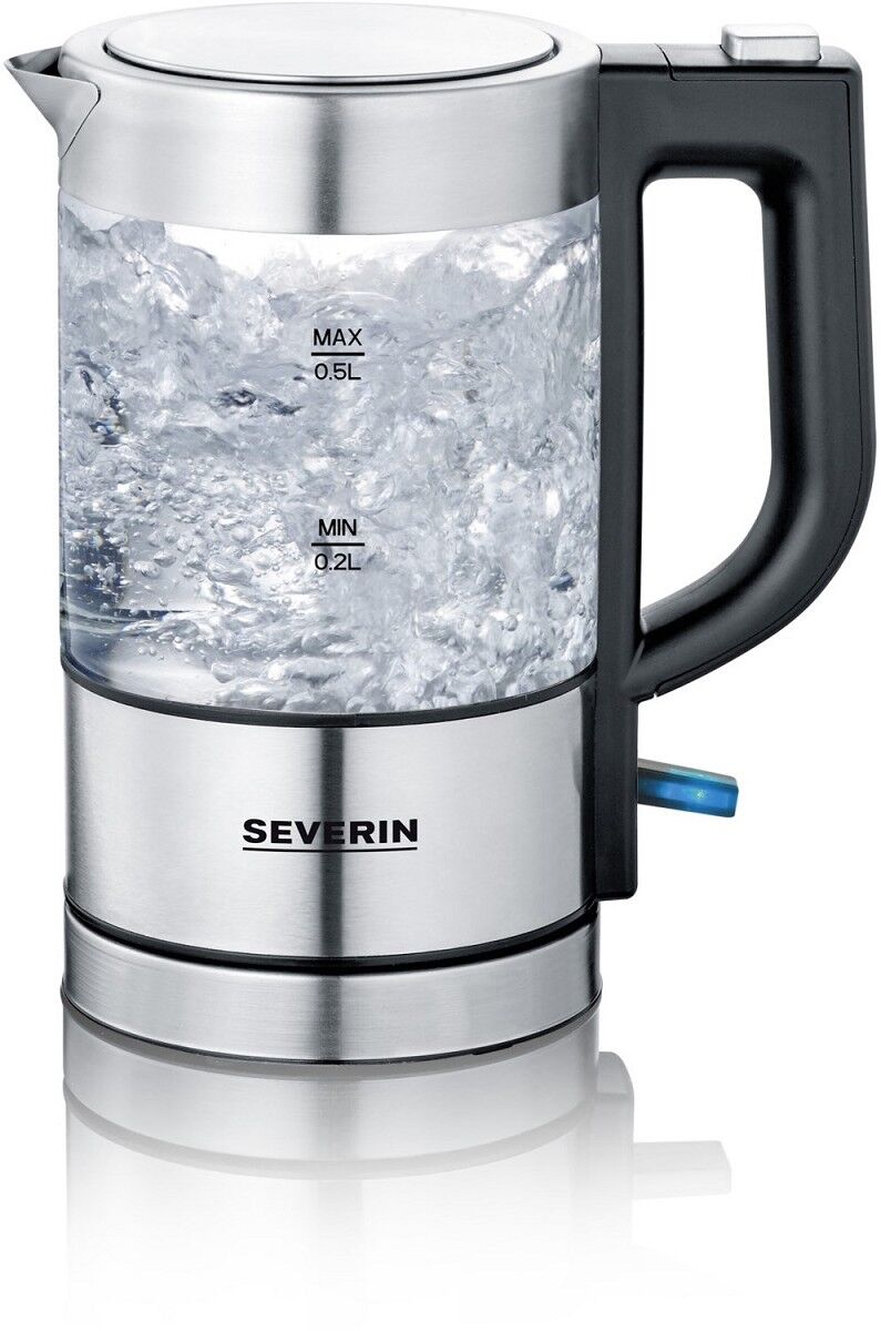 Severin WK 3472. Fassungsvermögen Wassertank: 0,5 l. Leistung: 1100 W. Produktfarbe: Silber, Gehäusematerial: Glas, Edelstahl, Wasserstandsanzeige, Überhitzungsschutz. Drahtlos. Filterung