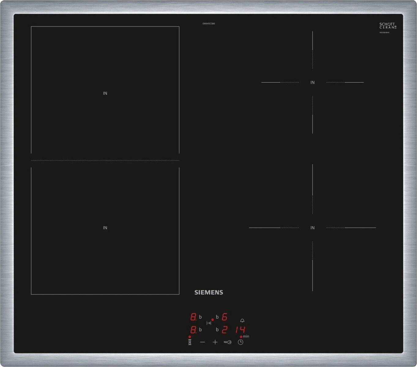 - 2-stufige Restwärmeanzeige je Kochzone: Zeigt an welche Kochzonen noch heiß oder warm sind.