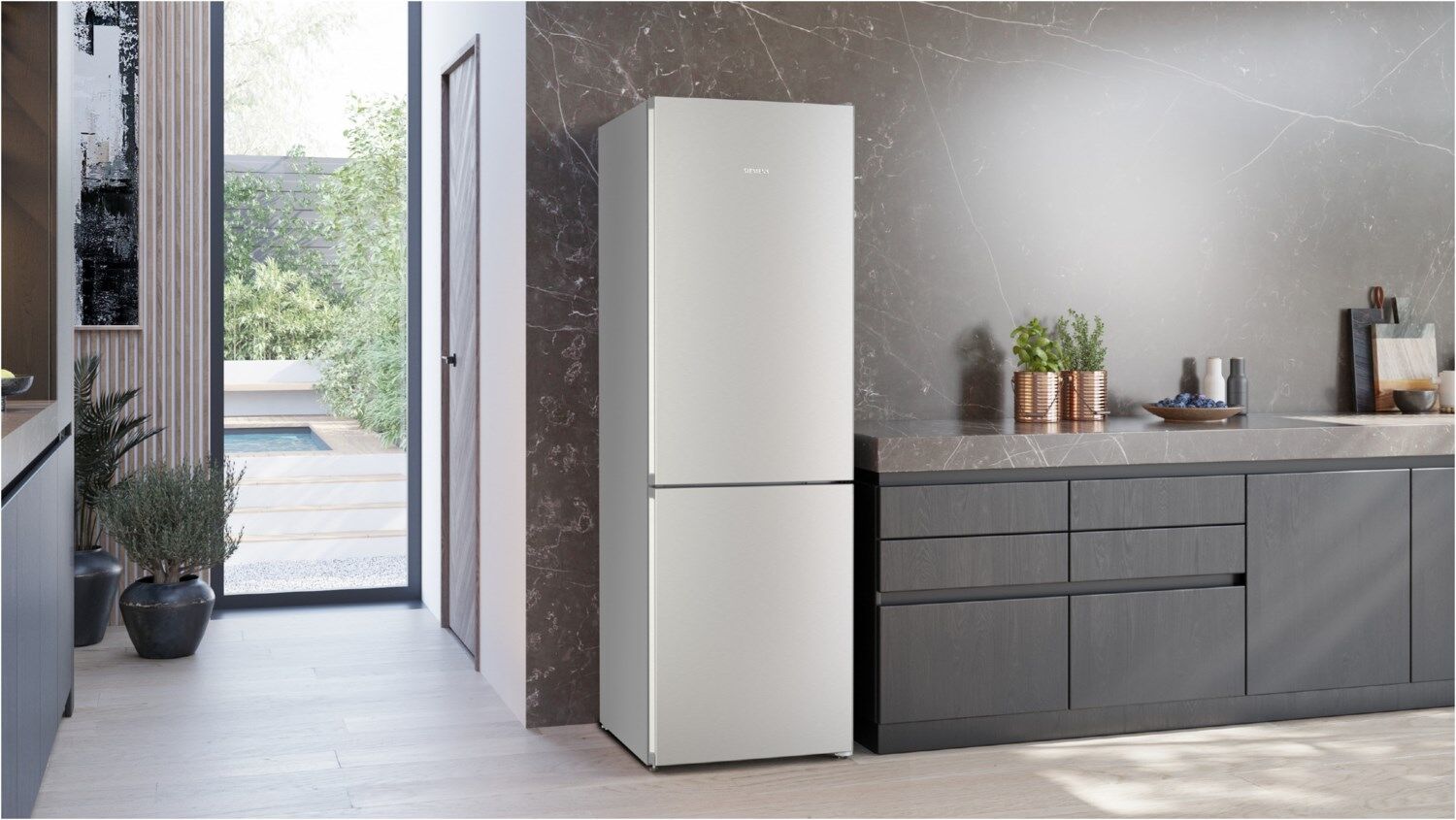 Kein Seitenabstand: platziere deinen Kühlschrank direkt an der Wand oder in einer Nische ohne Zwischenraum