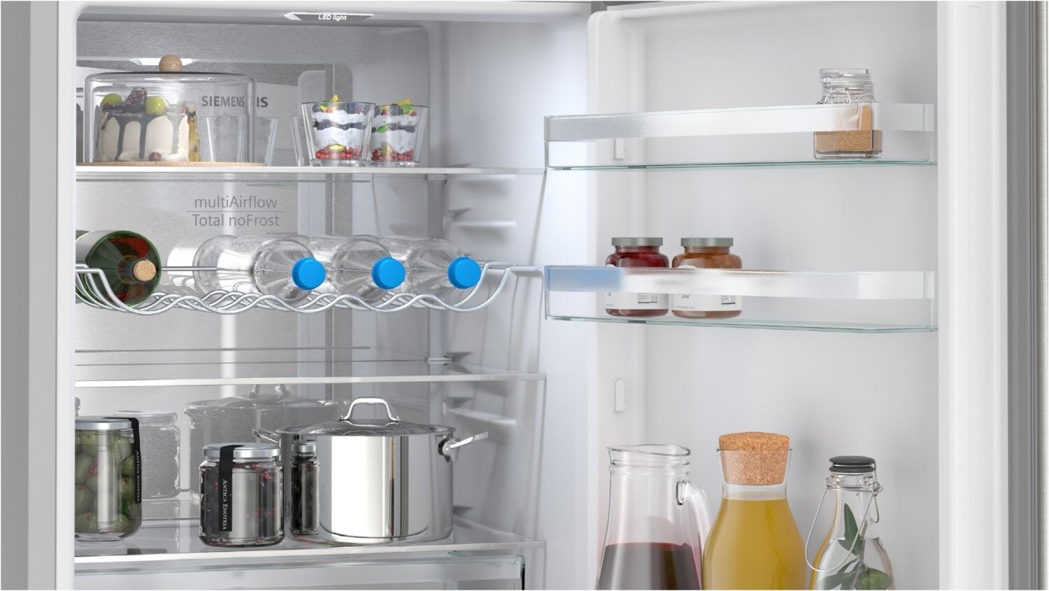 Metallrückwand mit multiAirflow: gleichmäßig gekühlte Lebensmittel und Getränke auf allen Ebenen
