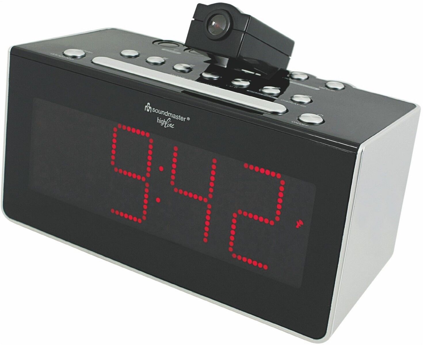 Zeitprojektion an Wand oder Decke (Projektionsanzeige zuschaltbar & 180° drehbar)