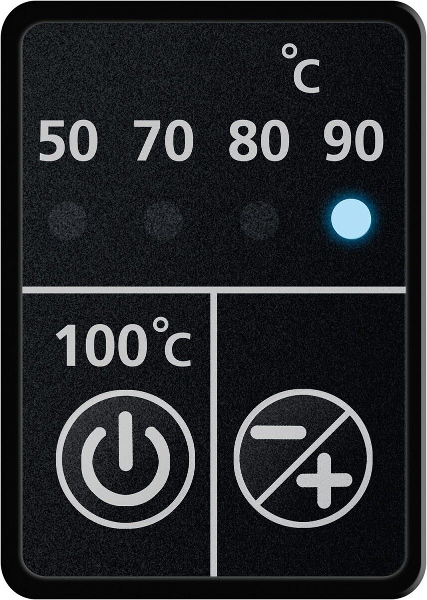 Temperatur einstellbar: 50, 70, 80, 90, 100°C mit farbiger Temperaturanzeige