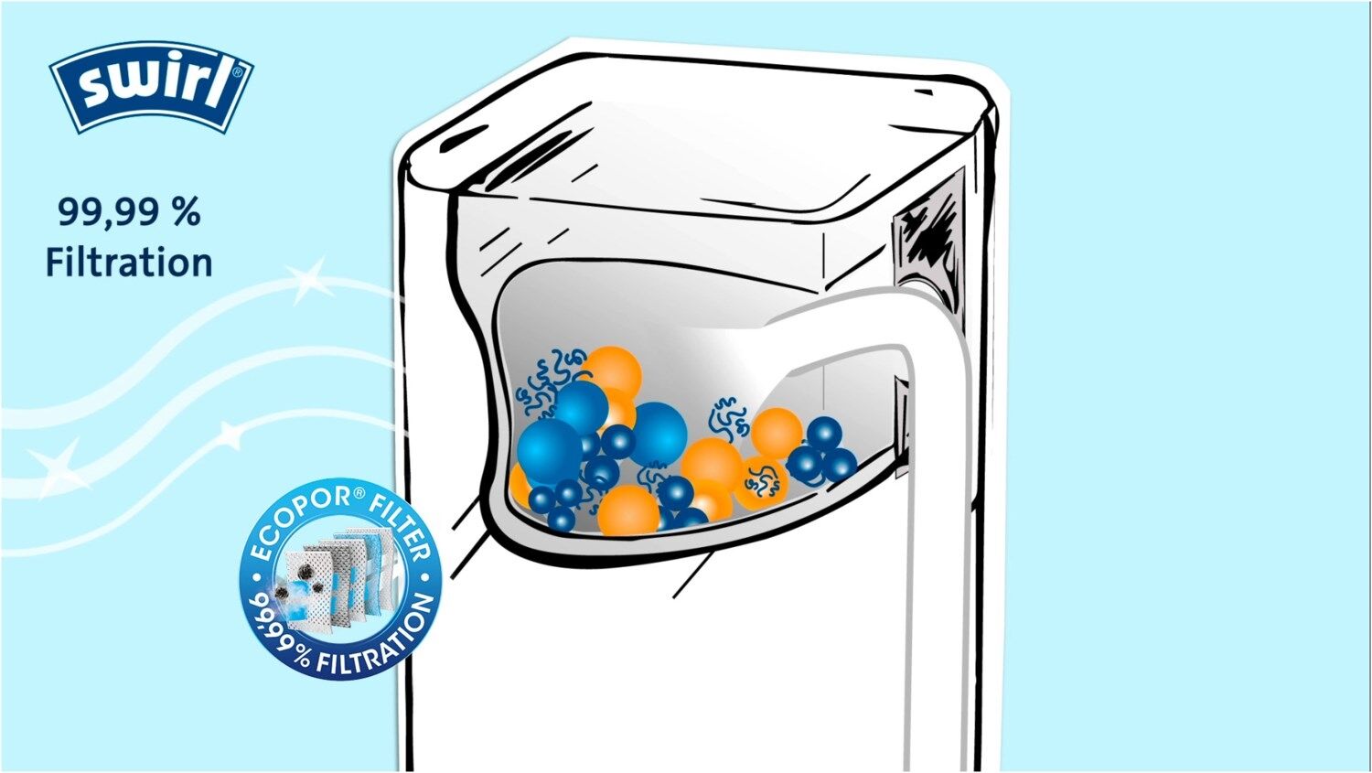 Swirl® Staubsaugerbeutel schließen Staub und Schmutz sicher ein. Bestehend aus besonders reißfestem Vlies-Material, filtern die Beutel 99,99% des eingesaugten Hausstaubs und allergenen Feinstaubs.
