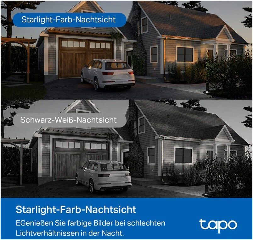 Starlight-Farb-Nachtsicht - Erhöht Ihre Sicherheit, indem sie hellere, vollfarbige Bilder und lebendige Details selbst bei schlechten Lichtverhältnissen mit integrierten Scheinwerfern und dem Starlight-Sensor zeigt