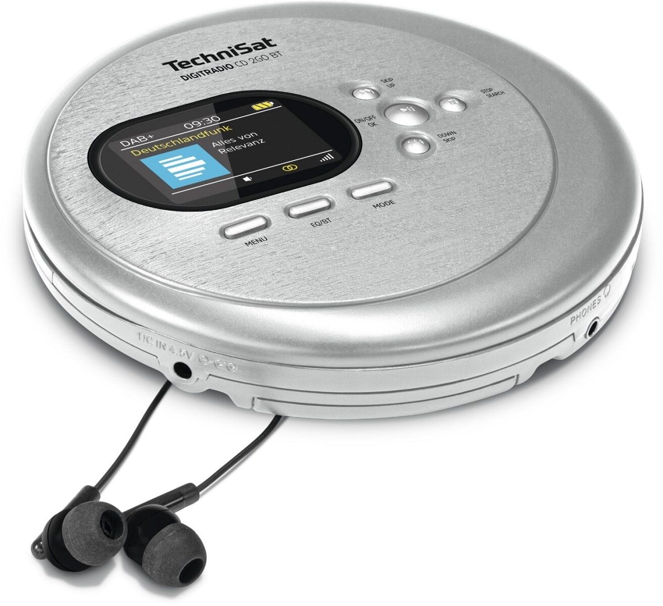 Flexibilität ist mit dem DIGITRADIO CD 2GO BT auch geboten. Denn Sie genießen Ihre Lieblingsmusik mit klassischen, kabelgebundenen oder auch kabellosen Kopfhörern - dank Bluetooth-Funktion. So können Sie diesen mobilen CD-Audioplayer auch bei der morgendlichen Joggingrunde mitnehmen. Die Anti-Shock-Funktion garantiert störfreie Motivationsmusik.