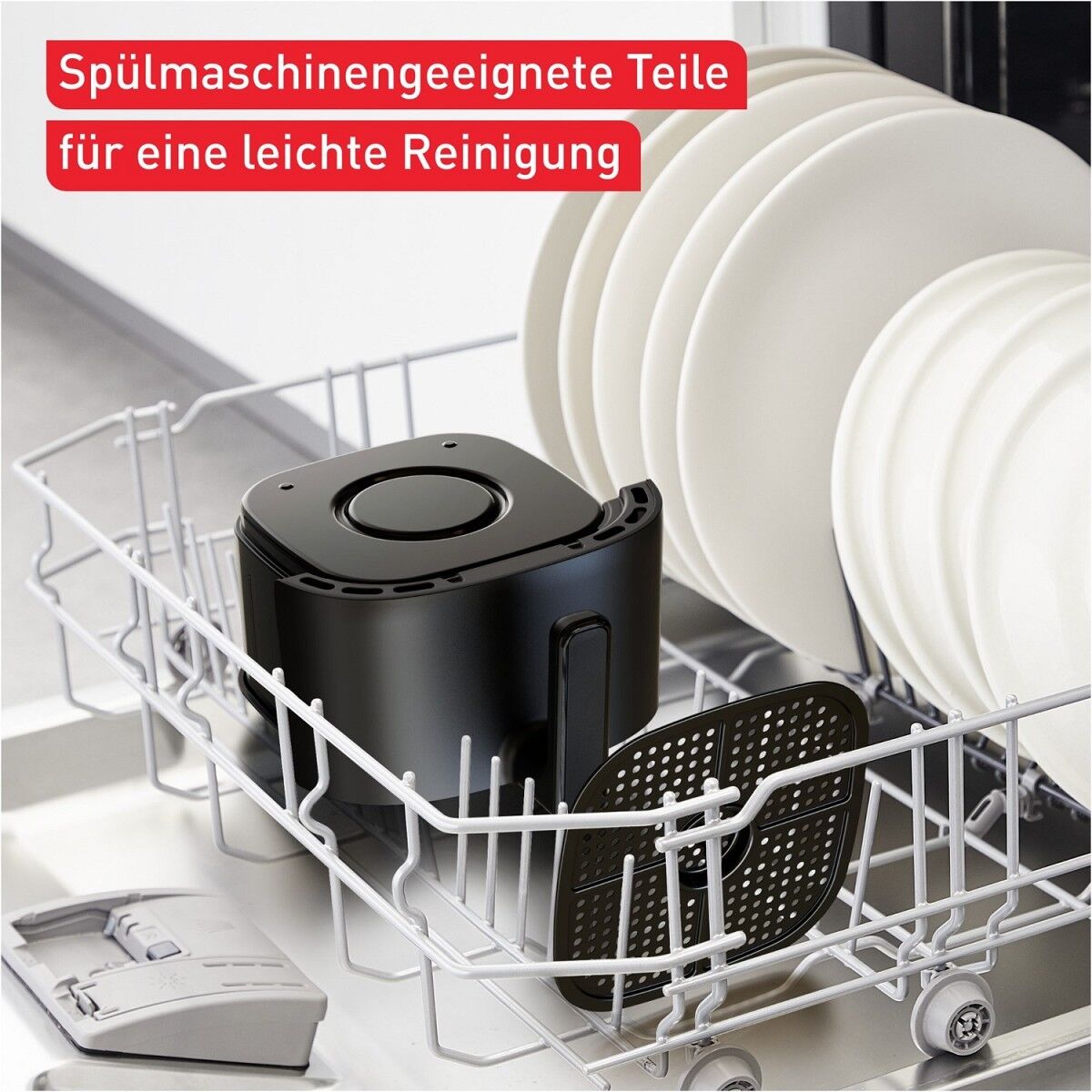 EINFACHE, SPÜLMASCHINENFESTE REINIGUNG: Der antihaftbeschichtete, spülmaschinenfeste Frittierkorb sorgt für müheloses Reinigen und ein stressfreies Kocherlebnis