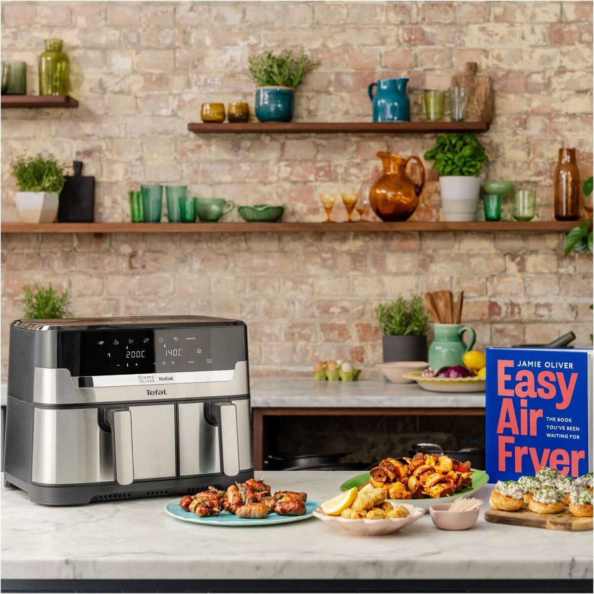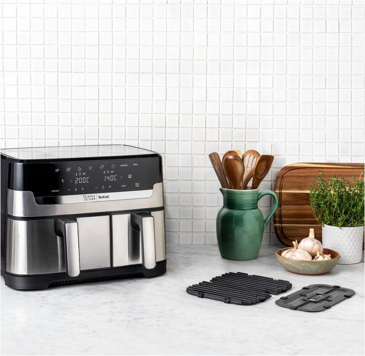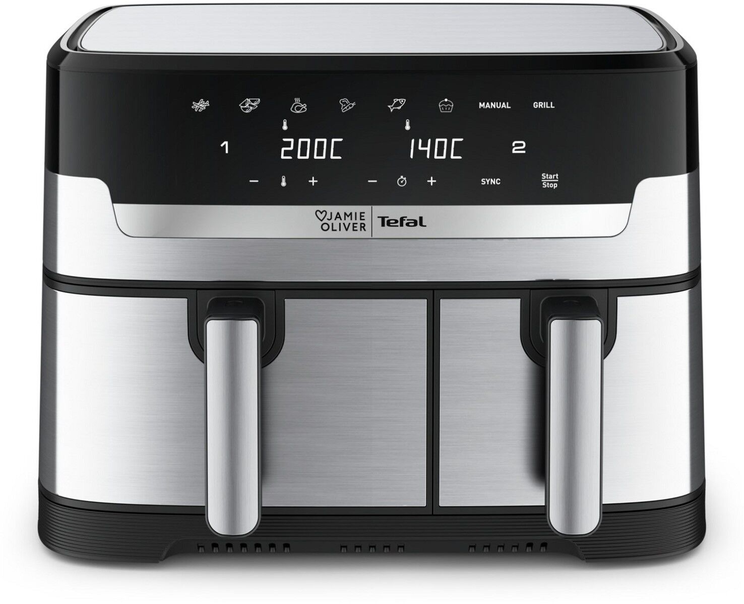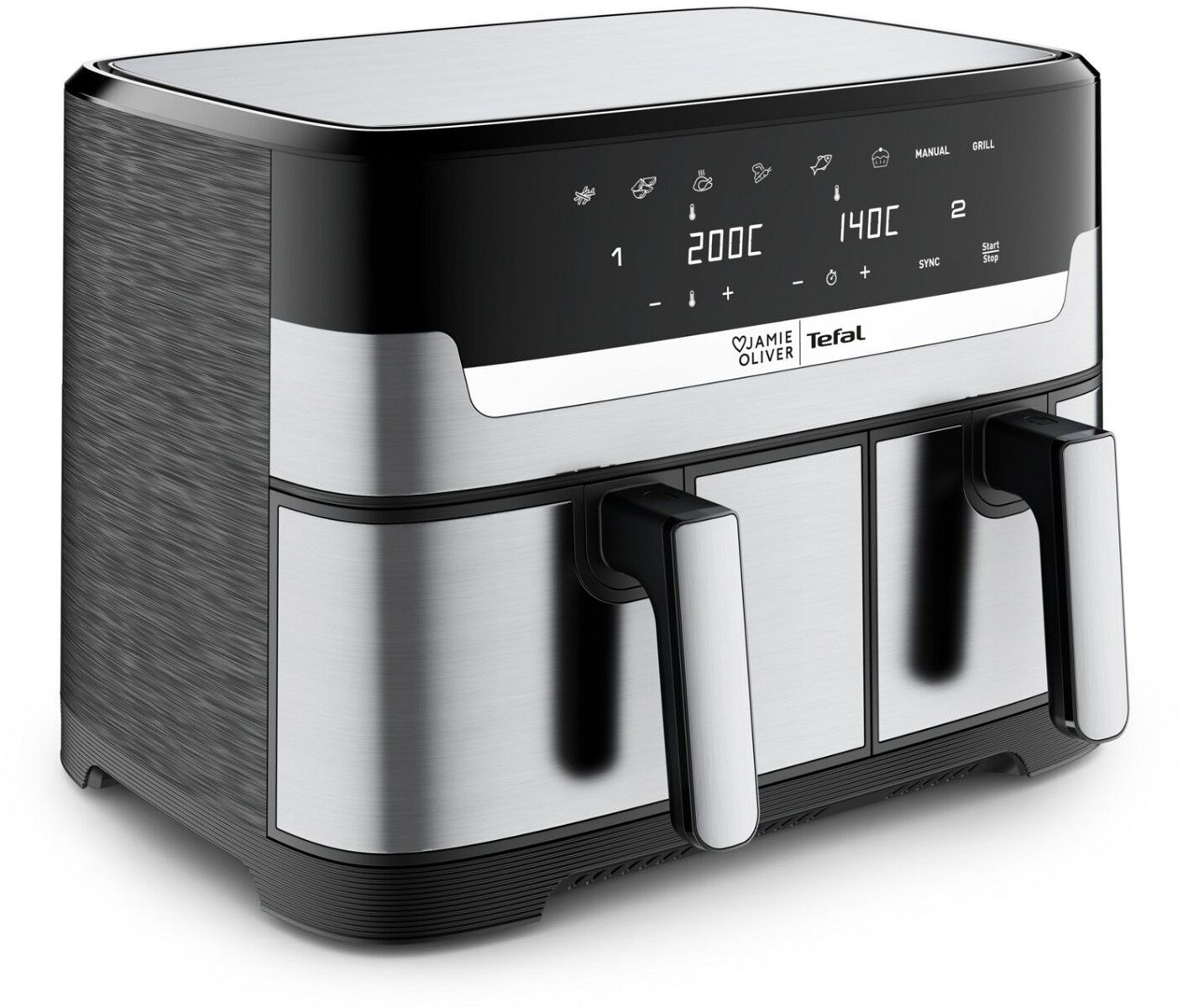 Entdecken Sie die 8,3-Liter-Doppelkammer Heißluftfritteuse von Tefal, mit der Sie in einem Durchgang und in weniger als 15 Minuten komplette, hausgemachte Mahlzeiten für die ganze Familie zubereiten können! Dual Easy Fry von Tefal verfügt über zwei unabhängige Schubladen, in denen zwei verschiedene Gerichte gleichzeitig auf den Punkt zubereitet werden können – von köstlich knusprigen Pommes Frites bis hin zu leckerem Fleisch, Fisch, Gemüse und sogar Desserts.