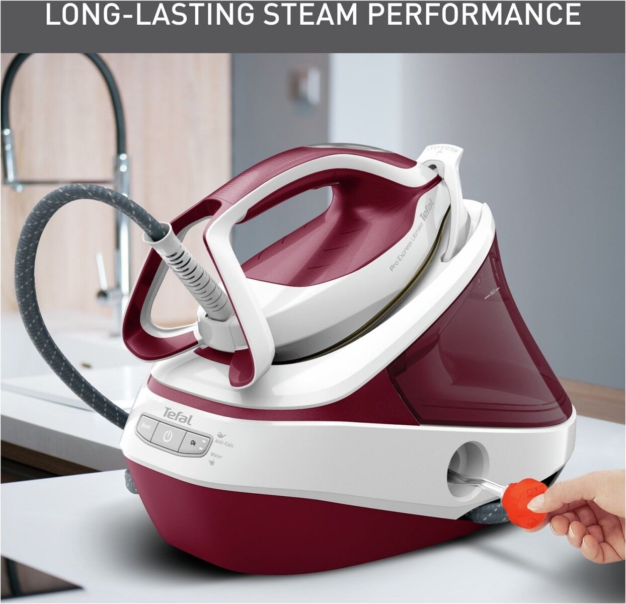 Mit einer außergewöhnlichen Dampfkraft und in einem bedienerfreundlichen Design sorgt die Tefal Pro Express Ultimate II für eine kompromisslose und einfache Wäschepflege. Diese höchst leistungsstarke Dampfbügelstation kombiniert Leistung mit einer Reihe intelligenter Funktionen und Design: Perfektes Bügeln, das für alle Textilien sicher ist, ohne dass Einstellungen erforderlich sind, vertikale Dampffunktion für das schnelle Auffrischen zwischendurch und abnehmbarer Kalk-Kollektor für eine langanhaltende Dampfleistung, und vieles mehr.