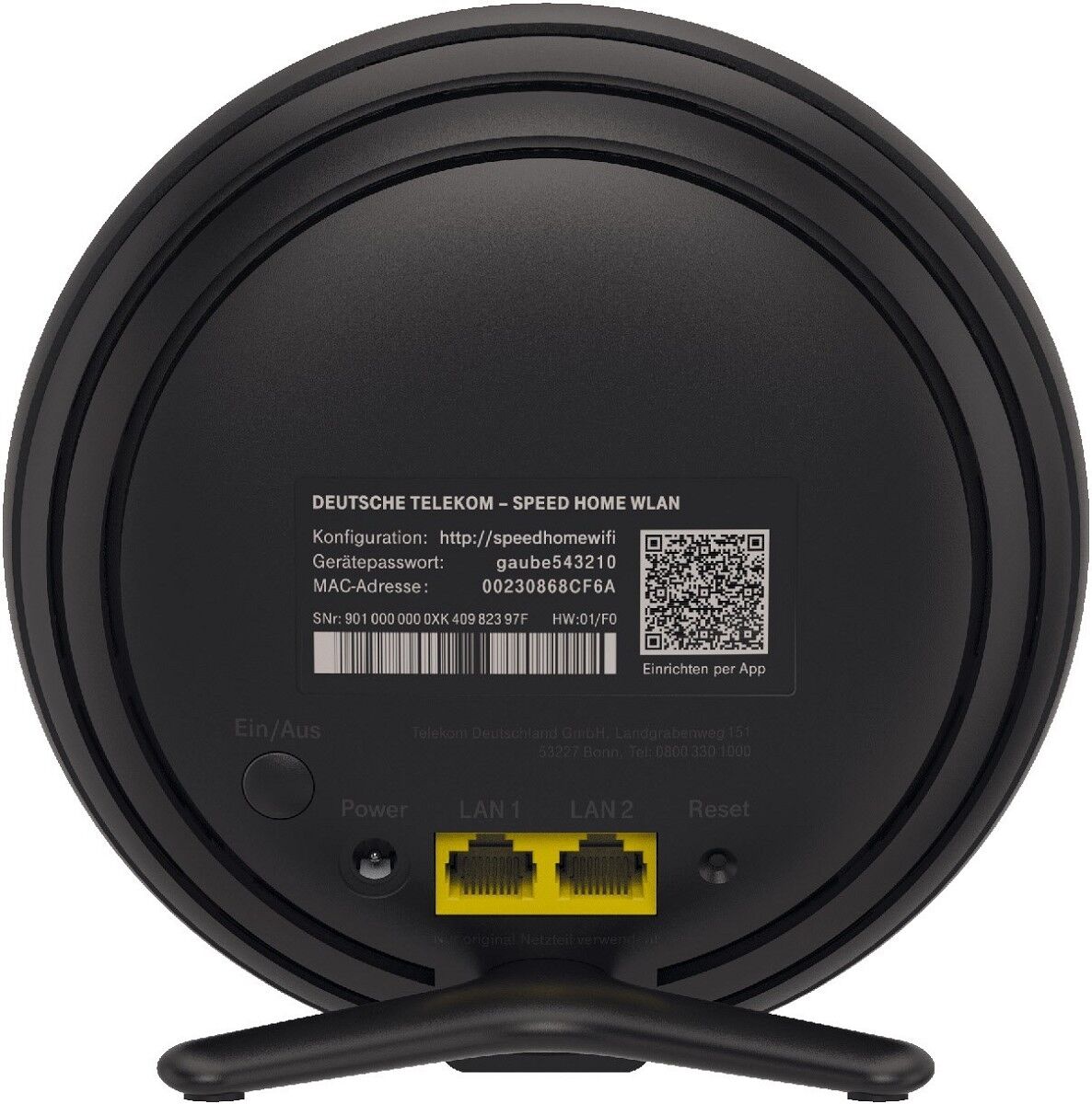 Telekom 40823475. Maximale Datenübertragungsrate: 4800 Mbit/s, Netzstandard: IEEE 802.11ax, Kanalabstand: 160 MHz. Unterstützte Sicherheitsalgorithmen: WPA2,WPA3. Platzierung: Tisch, Produktfarbe: Schwarz. Antennentyp: Intern. Breite: 157 mm, Tiefe: 69 mm, Höhe: 157 mm