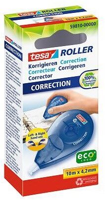 Der tesa Seitswärtsroller Korrigieren eco Logo ist eine praktische Lösung für alle, die häufig etwas korrigieren müssen. Mit dem Korrekturroller können Sie Fehler schnell und sauber abdecken und umgehend beheben, wobei sich das Band automatisch strafft. Da der Einweg-Korrekturroller zum eco Logo-Sortiment der Traditionsmarke gehört, handelt es sich um ein ausgesprochen umweltfreundliches Produkt, das lösungsmittelfrei produziert wird. Das Gehäuse des Rollers ist transparent, so dass Sie immer wissen, wie viel Band sich noch in ihm befindet.