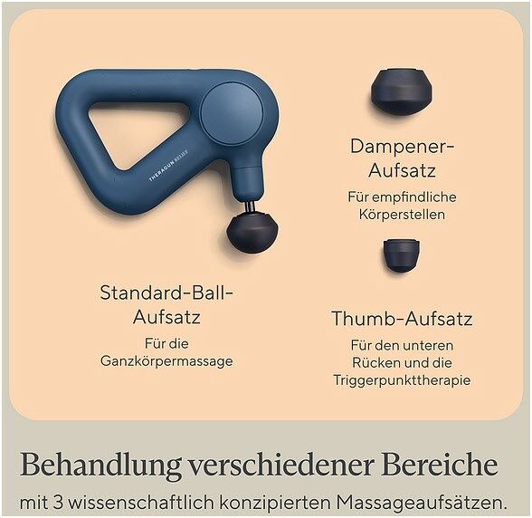 Theragun Relief vereint unsere bequemste perkussive Massagetherapie mit drei besonderen Aufsätzen, die für verschiedene Arten von Muskelschmerzen entwickelt wurden, von Schmerzen und Verspannungen bis hin zu hartnäckigen Knoten. Dabei sorgt der leise Motor für ein angenehmes Massageerlebnis ohne übermäßige Geräusche. Mit dem Dreiecksgriff erreichst du auch schwer zugängliche Stellen und mit den drei Spezialaufsätzen kannst du von großen Muskeln bis hin zu empfindlichen Stellen alles behandeln.