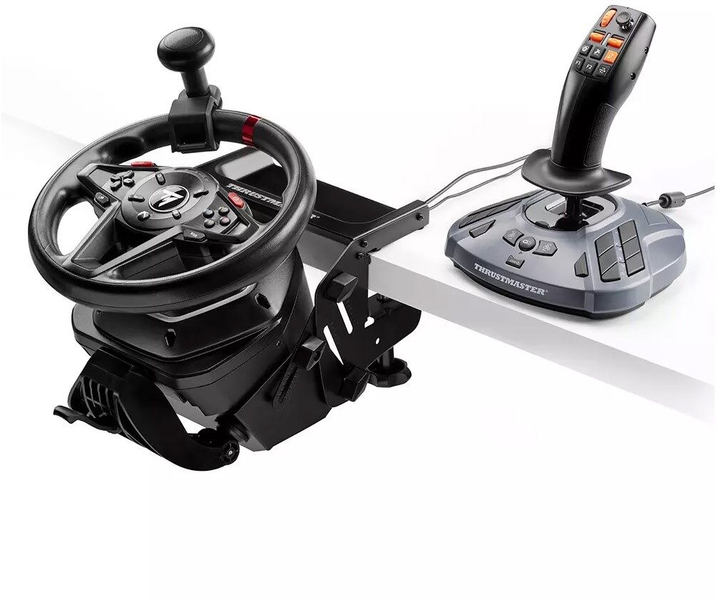 Verwenden Sie den SimTask FarmStick in Verbindung mit einem Rennlenkrad T128 oder T248 und einem SimTask Steering Kit (alle separat erhältlich), um eine umfassende Lenkkontrolle zu erlangen und die Fahrerkabine von Land- oder Baumaschinen zu simulieren. Der SimTask FarmStick kann auch allein oder als Duo für technischere Maschinen, einschließlich Forstmaschinen, verwendet werden.