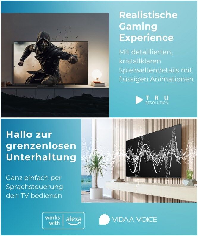 - VIDAA OS mit Zugriff auf Apps & Streaming-Dienste