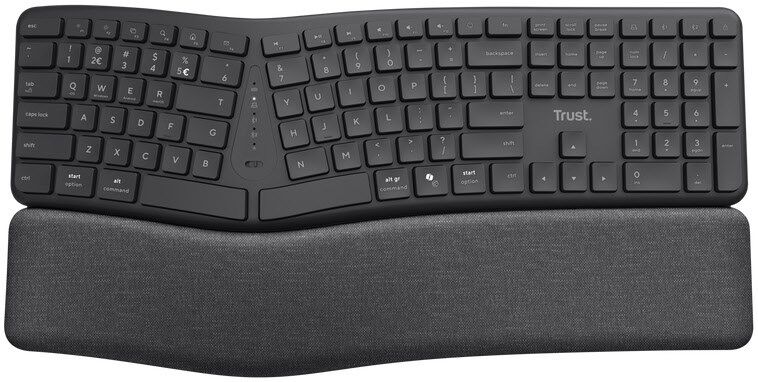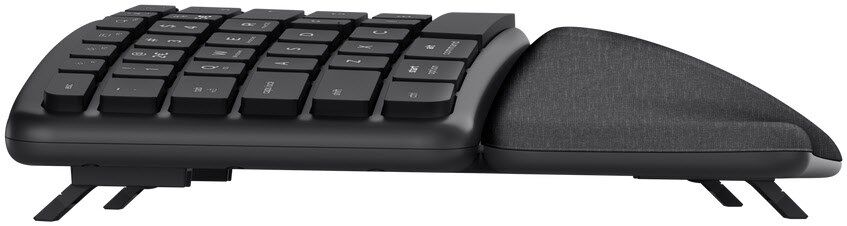 Das ergonomische Design trägt im Vergleich zu einer herkömmlichen Tastatur zu einer besseren Körperhaltung, einer geringeren Belastung und einer zu besseren Unterstützung für das Handgelenk bei