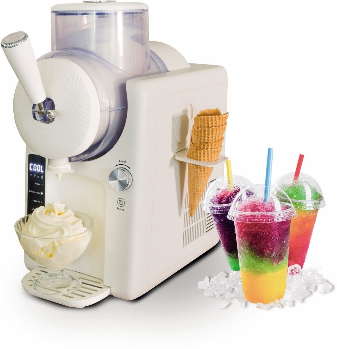 Eiskalter Partyspaß für Groß und Klein: Die professionelle Slush-und Softeismaschine eignet sich perfekt zur Zubereitung von leckerem Softeis, Slushies,Frozen Cocktails, Frappés, Milchshakes und vielen weiteren erfrischenden Köstlichkeiten
