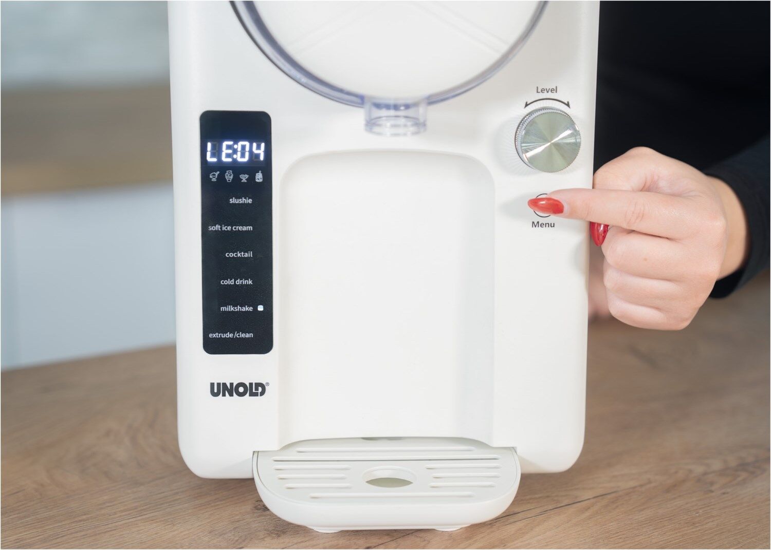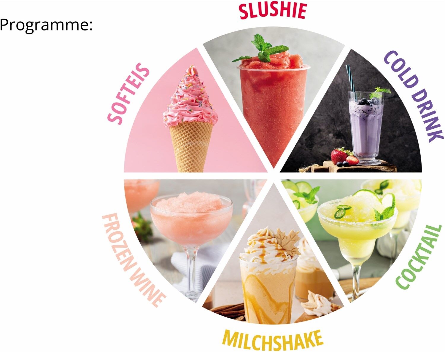 Perfekte Ergebnisse dank des digitalen Touchdisplays und 5 voreingestellten Programmen: SOFTEIS, SLUSHIE, COCKTAIL , MILKSHAKE, und COLD DRINK