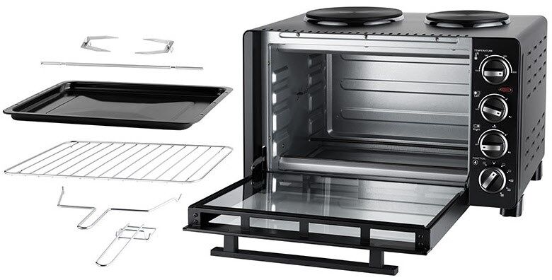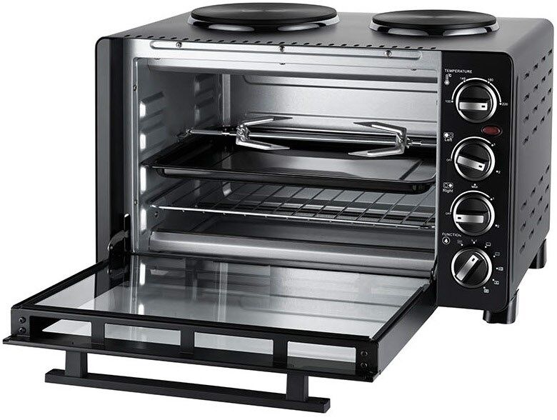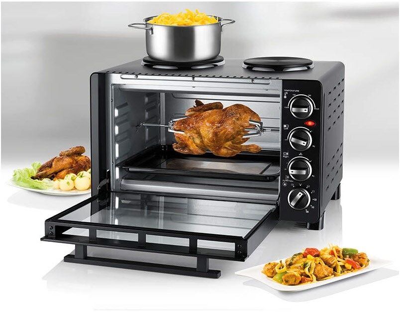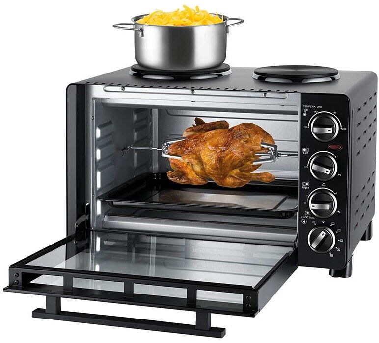 Mit Drehspieß für bspw. Hähnchen, für Pizza und Backfomen bis ca. Ø 25 cm geeignet