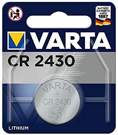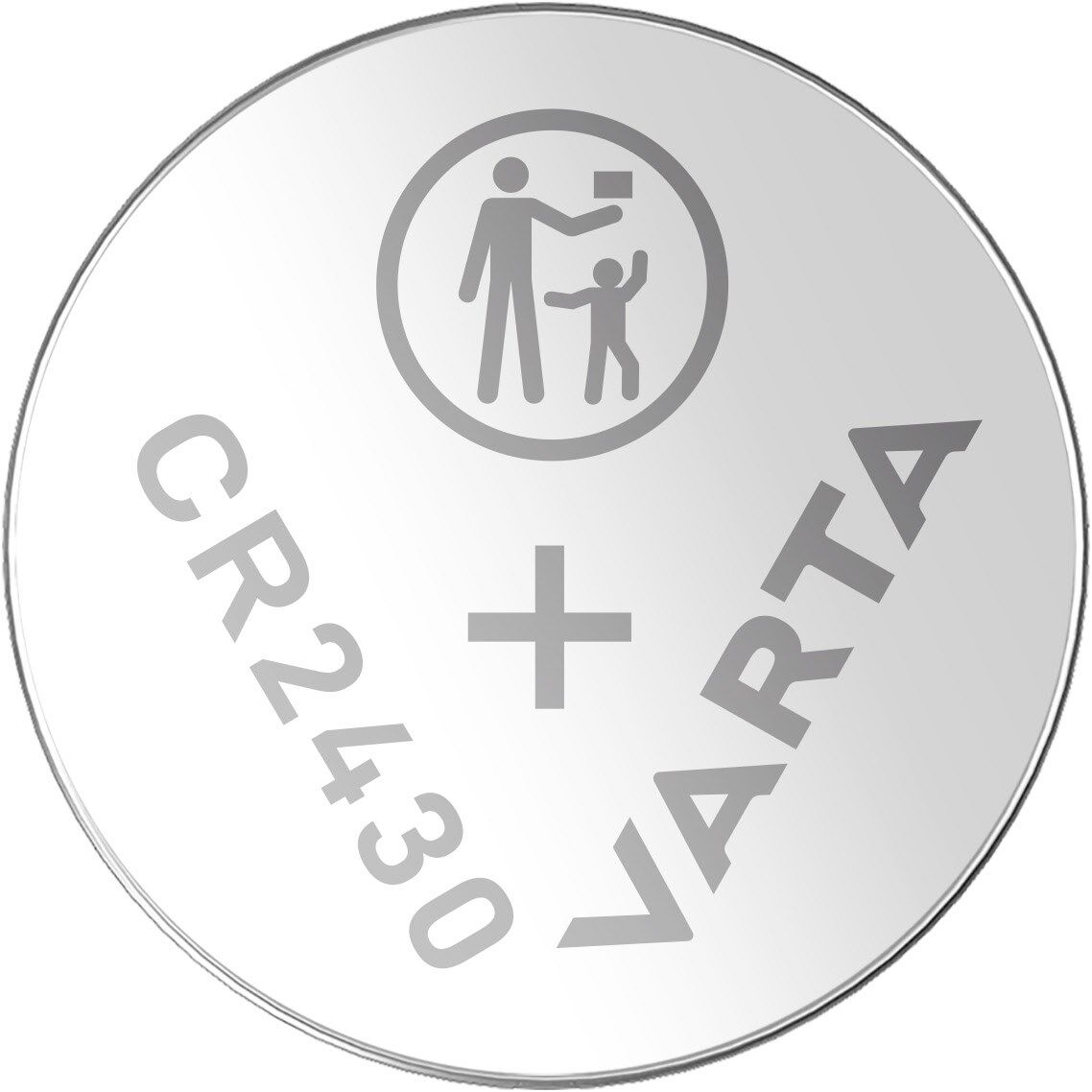 Varta -CR2430. Akku-/Batterietyp: Einwegbatterie, Batteriegröße: CR2430, Batterietechnologie: Lithium. Höhe: 3 mm, Durchmesser (mm): 2,45 cm, Gewicht: 4 g. Verpackungsbreite: 56 mm, Verpackungstiefe: 7,5 mm, Verpackungshöhe: 65 mm. Batterie Formfaktor: Knopf/Münze