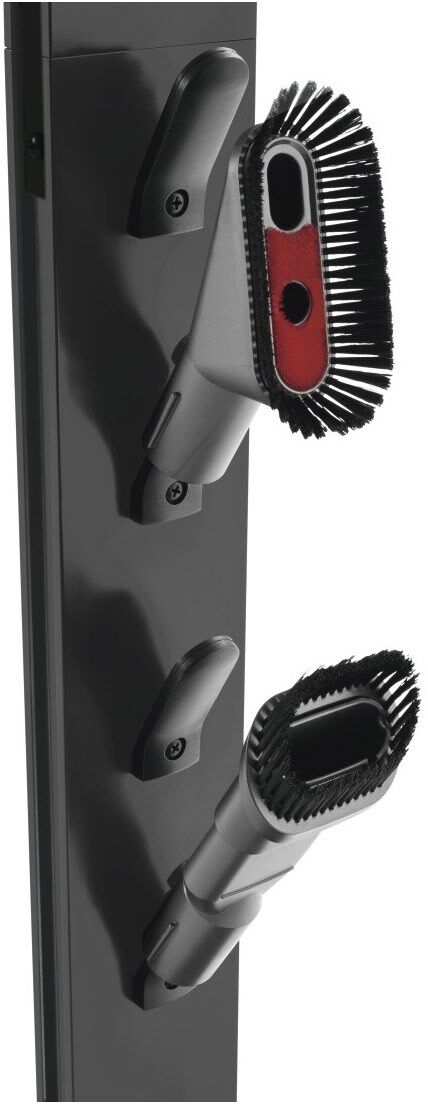 stabiler Stand für den Staubsauger, ordentliche Organisation an den einzelnen Halterungen für Zubehörteile