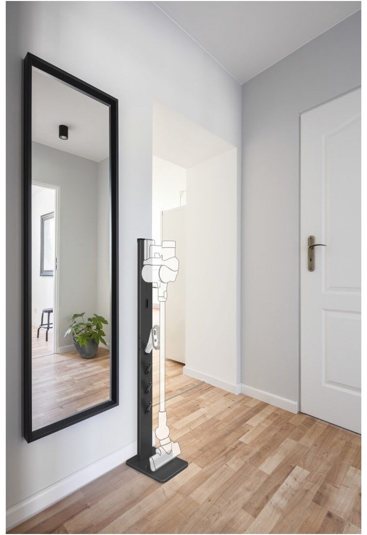 Boden-Standfuß mit Halterungen für Akkustaubsauger: für eine ordentliche und übersichtliche Aufbewahrung sowie schnellen Zugriff auf unterschiedliches Staubsaugerzubehör