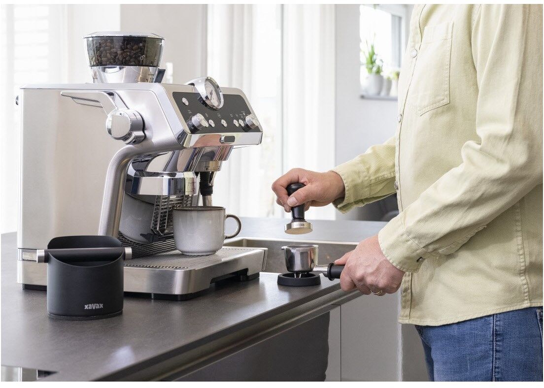 Must-have Siebstempel: der ausbalancierte Anpressdruck mit Tamper verbessert den Wasserdurchlauf durch das gesamte Pulver – so entfalten sich alle Aromen.