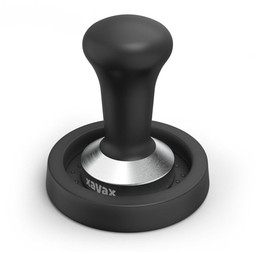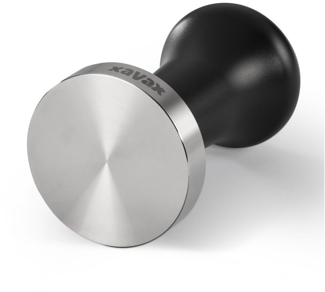 Der Barista-Tamper aus Edelstahl mit schwarzem Griff ist ein optisches Highlight neben Ihrer Siebträgermaschine
