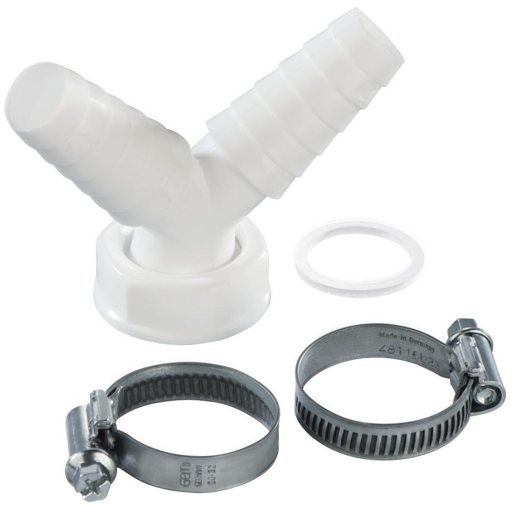 Adapter macht aus einem Einzelanschluss einen Doppelanschluss: ideal, wenn mehrere Geräte mit Abwasseranschluss an einen Siphon angeschlossen werden sollen
