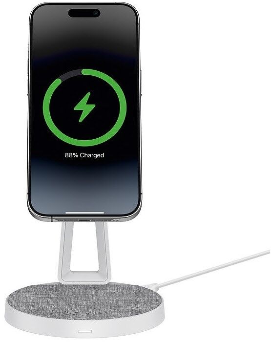 Die MagSafe Ladefläche lässt sich bequem in der Neigung verstellen, so genießen Sie ganz nach Ihrem Belieben den perfekten Blickwinkel. Die Wireless-Charging Ladefläche ist kompatibel für AirPods mit kabellosem Ladecase, AirPods Pro und andere Geräte, die kabelloses Laden unterstützen. Legen Sie das kompatible Gerät auf und der Ladevorgang startet automatisch. Ausgestattet mit einer edlen Stoffoberfläche gibt diese Ladestation an jedem Platz eine gute Figur ab.